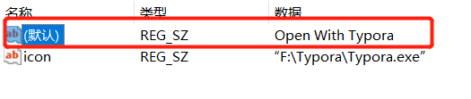 默认的数据改为Open With Typora,这个即为右键显示的项目名; - 添加一个字符串值,名称为